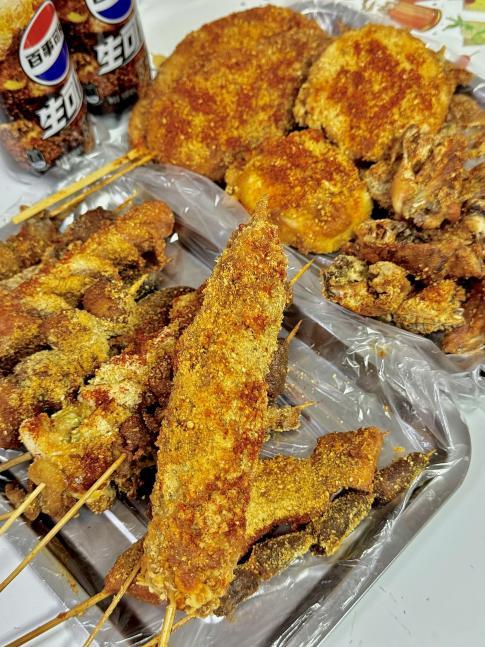 藏在老巷里的地道炸串店,现点现炸。炸里脊、炸茄子吸满秘制酱料,外酥里嫩,淀粉肠焦香,口味咸香适中,是地道街头风味。