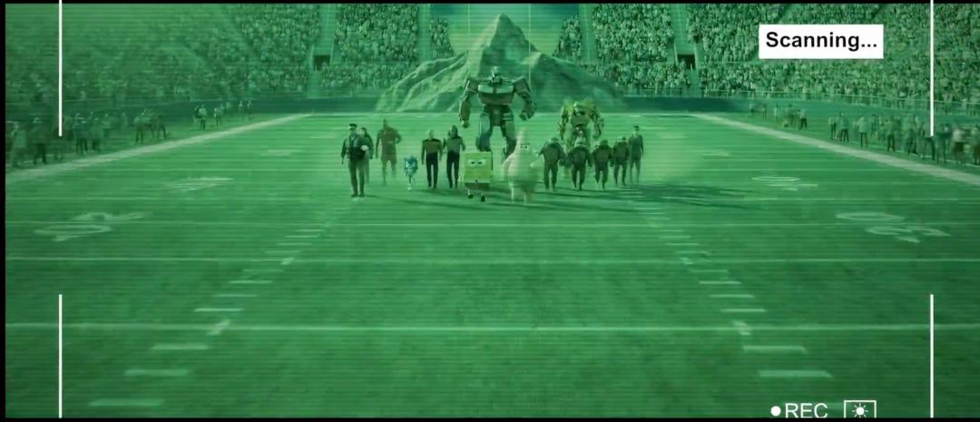 一大帮IP角色踏上战场,派拉蒙的海绵宝宝和变形金刚打头阵,忍者神龟全体斧钺钩叉,旁边站着教父。