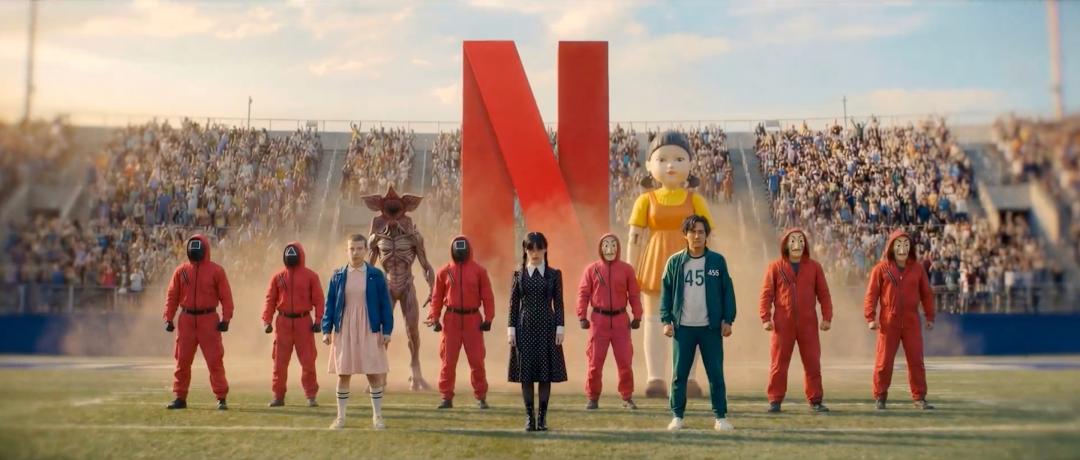 对面,Netflix《怪奇物语》小11和魔王菊花怪统一战线,星期三和《鱿鱼游戏》男主并肩作战,巨型娃娃在背后虎视眈眈。