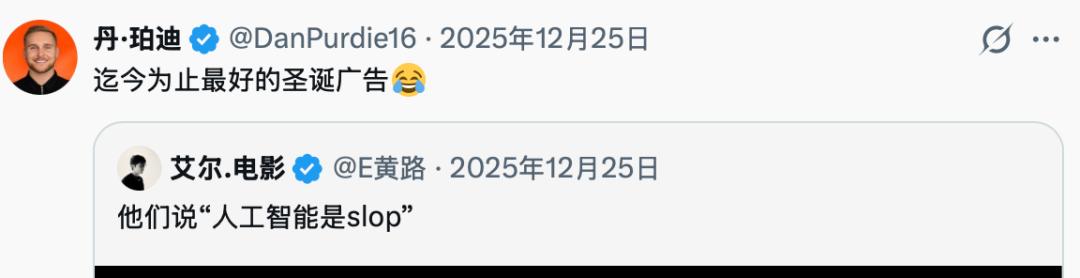 官方圣诞节AI广告大翻车,更加凸显了网友二创IP的AI广告的精致与趣味属性。