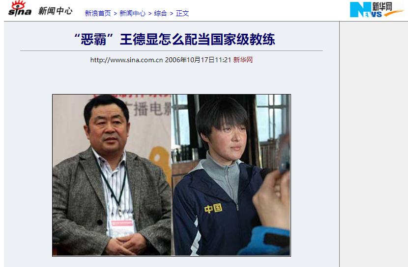 新华网2006年10月17日《“恶霸”王德显怎么配当国家级教练》