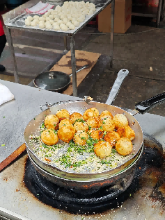 焦脆的外皮裹着鲜嫩爆汁的肉馅,淋上少许咸甜酱汁,一口下去外皮酥脆、内馅多汁,鲜香味直击味蕾,再晚排队也值得!