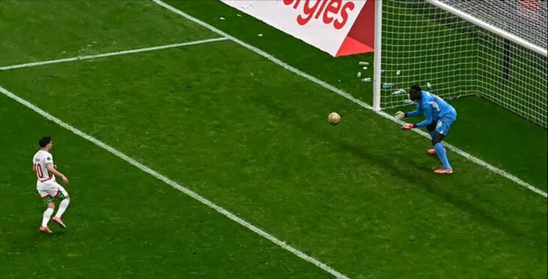 第114分钟,卜拉欣·迪亚斯站上点球点,选择以勺子点球的方式射门。这个球对于门迪而言扑救起来毫无难度,皮球不偏不倚地飞向球门中路,门迪甚至都无需做出扑救动作。