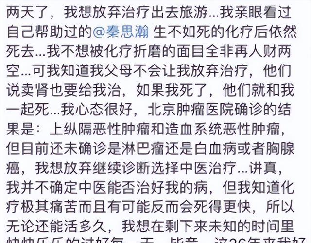 她放弃了原本更有效地化疗,选择了中医治疗。?