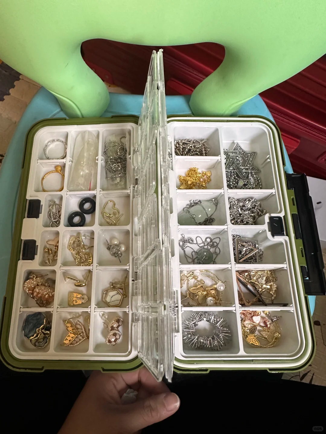 这种渔具收纳盒是用来收纳渔具的,都是男士使用的,但其实它里面有很多分装的小格子,每一个小格子都可以用来收纳首饰,把它当做首饰收纳盒,再合适不过了,