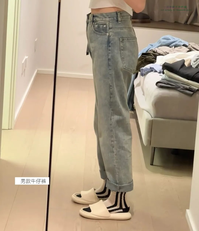 而现在很多牛仔裤其实都是男女同款的,现在也不流行太过紧身的牛仔裤,也不用特意区分男女款,都是一样的宽松款就买男款的就行了,
