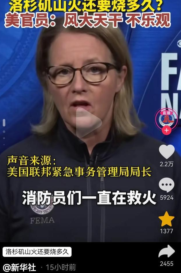 听完美国官员的介绍,恐怕更让当地民众感到担忧,因为风太大,而且天干物燥,洛杉矶好久都没有下过雨,所以情况不容乐观,如果遇上了新一轮的强风,恐怕还会加剧火势的蔓延,造成更大的财产人员损失。