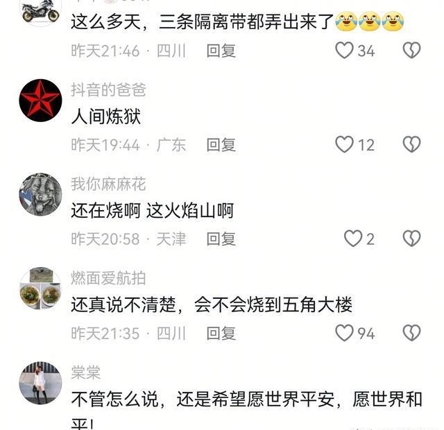 对此,有网友感慨,简直犹如人间炼狱,过去这么多天了,怎么还在烧啊?