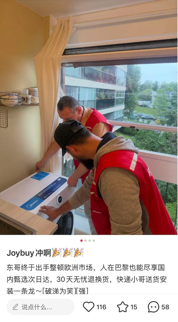 Joybuy重点关注这些用户痛点,上线后,很多用户都自发在社交媒体上分享了购物感受。一位荷兰用户表示,网购重物大件直接送货上门,家电还能免费送装回收一体,再也不用为安装拆卸头疼。一位英国用户表示,自己在早上9点下单,当天就送到了,她感到非常震惊。因为英国次日达都很难实现,而且通常还要额外付钱。
