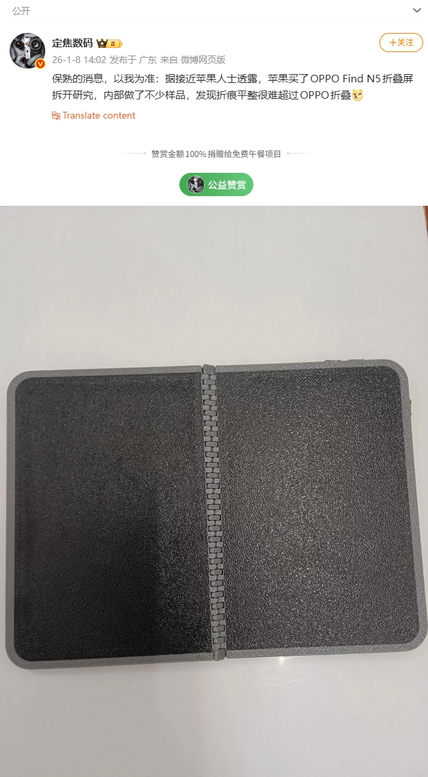 另外有博主爆料,苹果买了OPPO Find N5回去拆解,更是做出了不少样品,结果没一个折痕打得过这部一年前的机器,难不成苹果折叠屏也做不到无折痕?