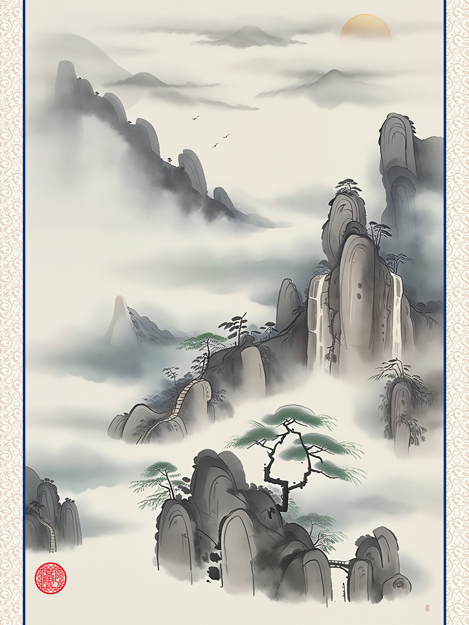 借AI之翼,扬千年水墨之韵。这一幅幅由智能之手精心勾勒的山水画卷,不仅是对华夏传统文化的一次深情致敬,更是向未来广阔天地中无尽可能的勇敢探索。它们如同穿越时空的信使,携带着古人的智慧与情怀,以崭新的姿态跃然纸上,每一笔、每一划都蕴含着对美的无尽追求与对传统的深刻铭记。AI,这位无形的画师,以其独特的视角和无尽的创意,让古老的水墨技艺在新时代焕发出勃勃生机,仿佛为传统艺术插上了一双翱翔天际的翅膀,引领着我们共同遨游于过去与未来的绚烂长卷之中。