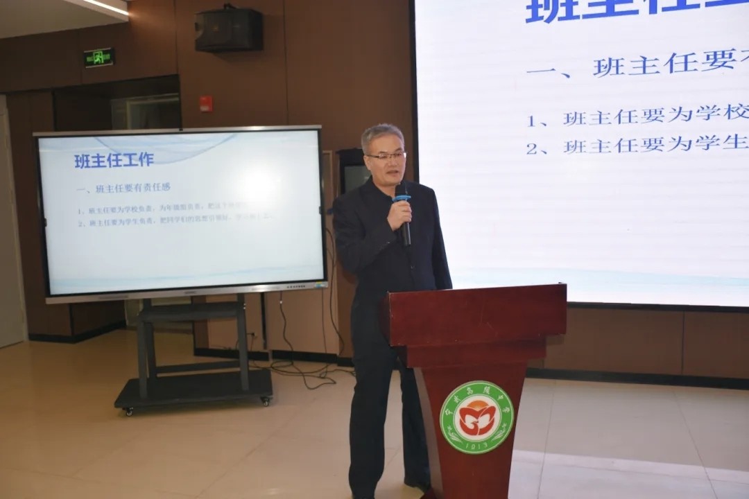 党支部书记、校长贾根福作总结讲话。他高度肯定了本次班主任工作论坛的成效,向辛勤付出的全体班主任致以诚挚的问候与感谢。他强调,班主任是学校育人工作的核心力量,班级管理是学校发展的基石,希望全体班主任以此次大会为契机,吸收借鉴优秀经验,深耕细作、笃行不怠,将育人初心融入日常点滴,用爱心、耐心与责任心守护学生成长。
