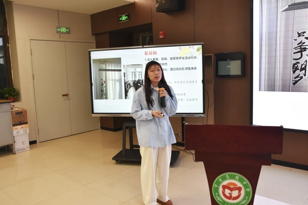 王志峰老师以“诗和远方,与你们同行”为主题,针对高中各阶段学生的身心特点和任务,制定了相应的班级管理策略。利用班会强调纪律、卫生、请销假制度等方面做了具体要求,并对每次月考班级成绩进行分析评价。