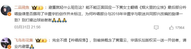 更让人意外的是,黄霄云演唱的最后一段吟唱旋律,与华晨宇另一首歌《孩子》中的即兴旋律高度相似,这才是事件的核心。华晨宇粉丝纷纷表示:这简直是“买了鸡蛋,顺手牵羊拿了个桃”! 虽然黄霄云方声称已取得《烟火里的尘埃》的授权,但对于这部分旋律的相似性却避而不谈。 这就像是,你买了张电影票,却顺手拿走了电影院的爆米花,感觉上是不是有点微妙呢?