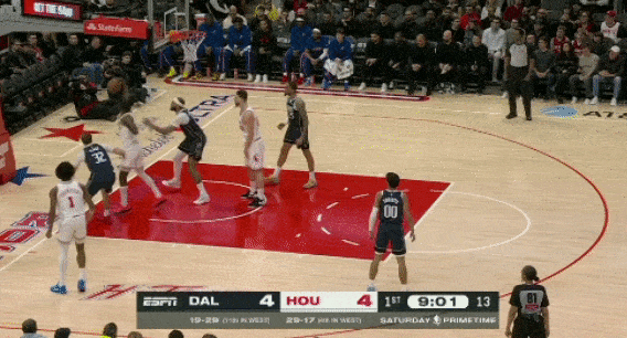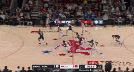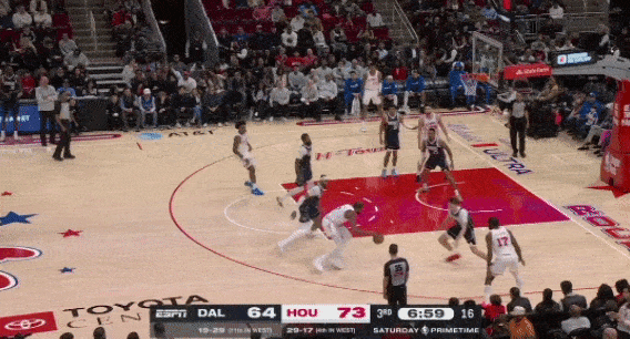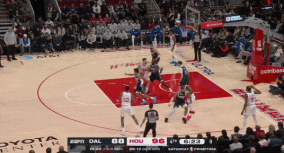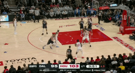火箭拥有出色的防守阵容,特别是把伊森提到首发后,阿门、伊森、小史密斯、杜兰特,这样一套长臂大尺寸锋线群,很容易打出防守反击。伊森下快攻的意识还是很出色的,包括第四节最后时刻杜兰特在边线被包夹时,伊森偷袭到篮下,完成扣篮。