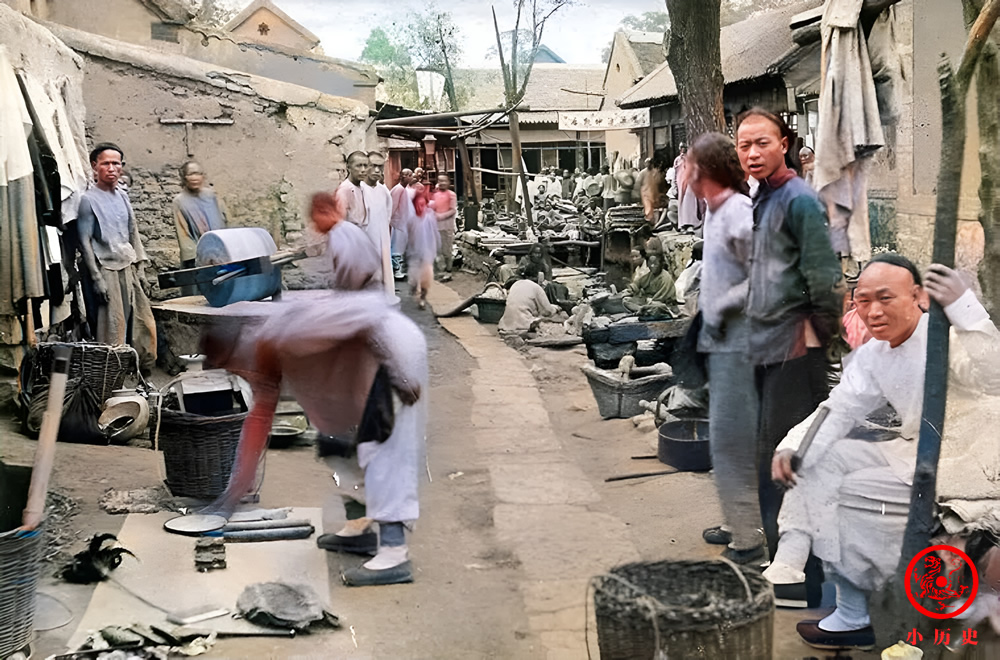 小编搜集整理了一组晚清老照片,并利用软件为之上色,再现100多年前的人物和社会场景。