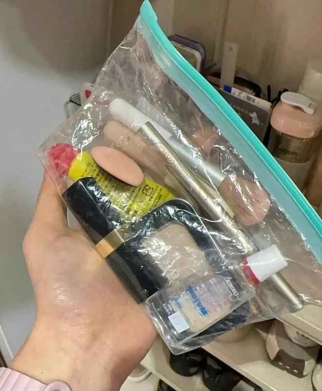保鲜袋就可以轻松搞定,透明可视,拿取方便,还能防脏防漏,比专门买的化妆包,用起来更加省心、轻便。