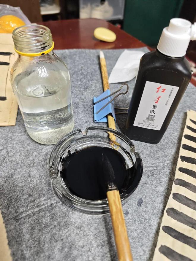 把家里闲置的烟灰缸拿出来,可以镇纸,可以舔墨,还可以当砚台,简直是一物多用,干嘛要花那个冤枉钱。
