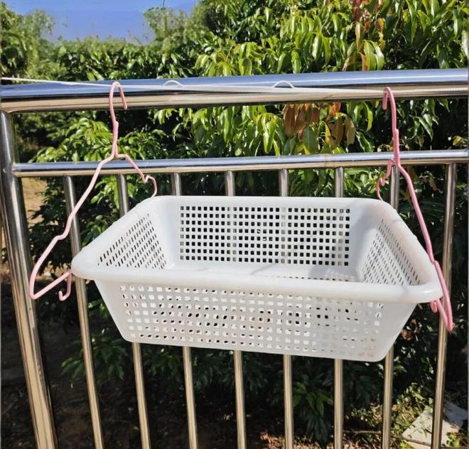 没有烤架也不用担心,找个镂空的网篮,再用扎带把它固定在衣架上,用来晾晒同样很方便。