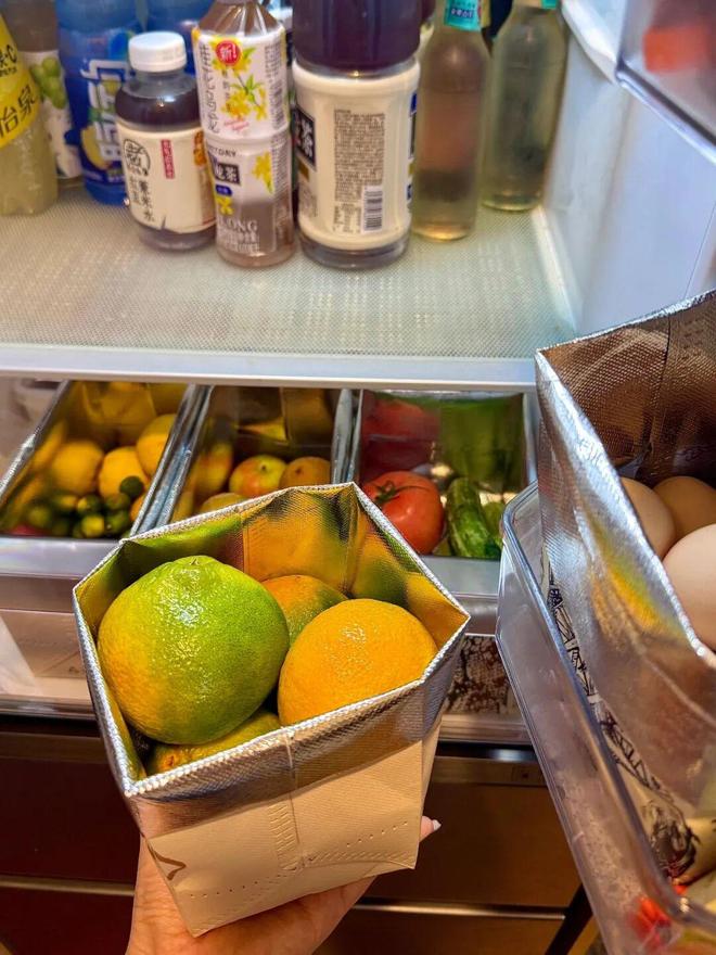 平时喝奶茶攒的奶茶袋,就是最好用的冰箱收纳盒,只需要翻折一下就行,一分钱都不用花。