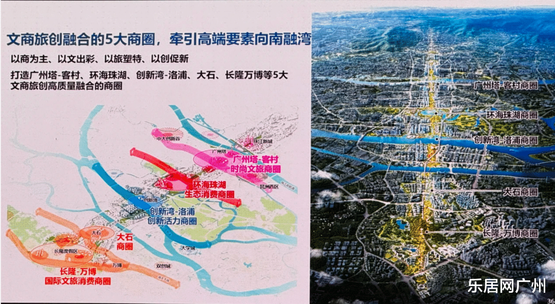 海珠—番禺的商业长廊已被提上日程,海珠新中轴”公布将投入超过400亿,串联广州塔—客村、海珠湖、创新湾—洛浦三个核心商圈,把高端消费、人流、文化场景统统往南导入。