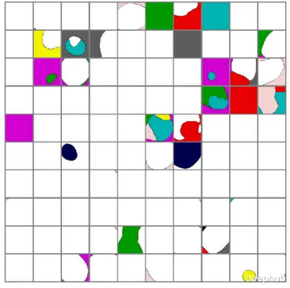 取几个数据点把它们周围的决策边界画出来,白色区域代表正确类别,有色区域对应错误标签。