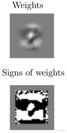 这些权重决定了分类结果。把权重的符号加到样本上或者从样本中减去。