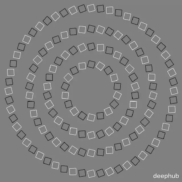 这些其实是同心圆,但因为方块的排列方向大脑会把它们解读成螺旋。