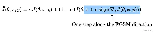 为什么要最大化损失?因为我们的目标是欺骗模型,所以要反着优化的方向走,ε sign()给出了能产生最大更新的方向。