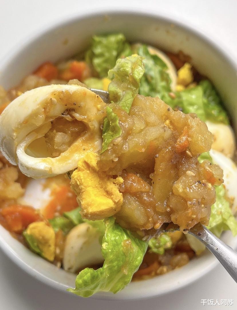 拌好的酱香鸡蛋土豆泥,色泽诱人,香气扑鼻。土豆泥的绵软、胡萝卜的清甜、鸡蛋的醇香、生菜的爽脆,再加上酱汁的浓郁,多种口感在口中交织,令人回味无穷。这道菜既可以作为主食,搭配一碗米饭或面条,也可以作为一道清爽的配菜,搭配肉类或汤品。它不仅适合减脂期食用,也适合日常家庭餐桌,老少皆宜。制作过程中,可以根据个人口味添加其他蔬菜,如黄瓜、玉米粒等,增加营养和口感的丰富度。