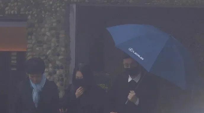 而许雅钧则一手拉着妻子,一手打着伞,但雨伞却只遮住了他自己,丝毫没有顾及到身旁的小S。