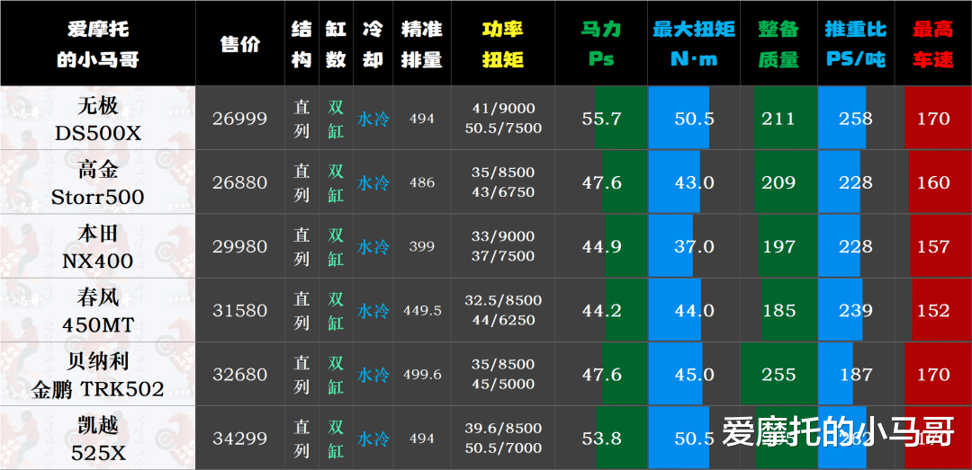 这款车的目标用户太清晰了:预算有限、想一步到位,不想买小排量凑活的摩友。懂行的都知道,拉力车基本没真正的小排量,除了豪爵DL系列,能打的全是500cc以上,排量一上去价格就水涨船高。无极DS500X正好卡在这个痛点上,绝对是2026年中排入门拉力的重点备选。