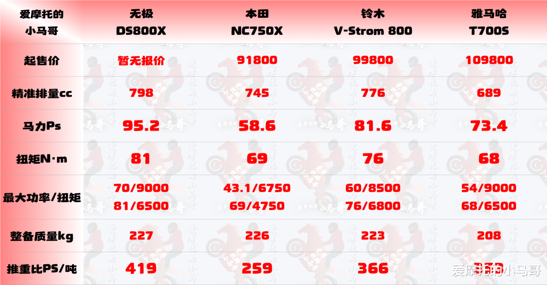 作为预热已久的车型,它的核心数据早就被扒透了,动力直接封神!搭载隆鑫自研全新798cc直列双缸发动机,妥妥的扭矩怪兽:最大马力95.2匹,峰值扭矩81N·m,比雅马哈T700S多21.8匹马力、高13N·m扭矩,纯纯降维打击!