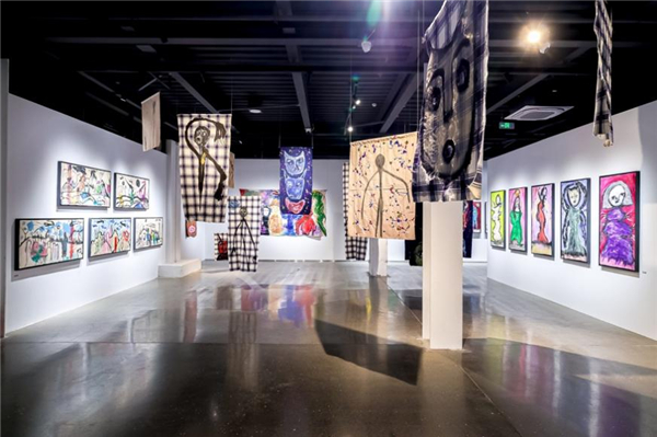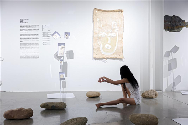 此次展览分为两个部分。第一部分位于米座中心大道,展出了Yuval在北京创作的以中国传统墨和麻布为材料的作品。这些作品不仅展示了艺术风格,还起到了引导观众进入展厅的作用。第二部分位于HE ART SPACE展馆内部,共分为八个篇章。