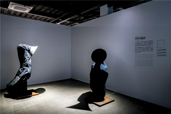 展厅中央陈列着的是一件全新的声音雕塑作品,于北京驻留期间创作,采用了中国本土传统元素铃铛与旧砖块,释放出基于“黑洞真实频率记录”(资料由美国宇航局与欧洲航天局科学家提供)的组合声音——黑洞正是光之缺席的象征。发光灯箱结合声音雕塑,揭示存在与缺席、光明与黑暗之间的交织关系,以及宇宙的深邃。