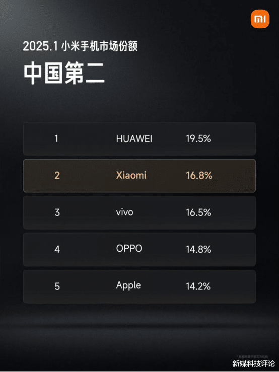 更关键的是,今年1月,小米手机的国内市场份额跃升至16.8%,超越vivo、OPPO,仅次于华为,成为市场第二。而且在去年全球手机出货量TOP3中,小米是唯一正增长的品牌。