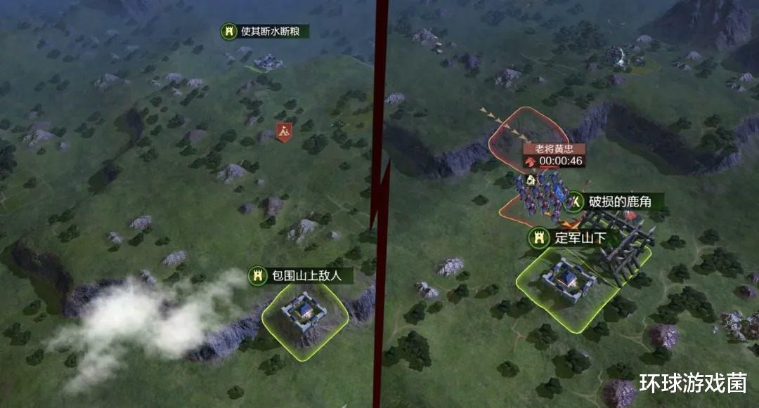 本赛季另外一大亮点,便是高低地形机制,让玩家有机会在游戏中演绎历史上黄忠“居高临下”阵斩夏侯渊的经典一幕。如同黄忠定军山之战那样,占据高地的部队不仅视野开阔,从山坡冲下时还能获得“破竹”状态,享受势如破竹的战斗加成。但占据高地也并非高枕无忧:若敌人封锁了所有斜坡路口,你的部队就会陷入“断粮”状态,士气大跌。