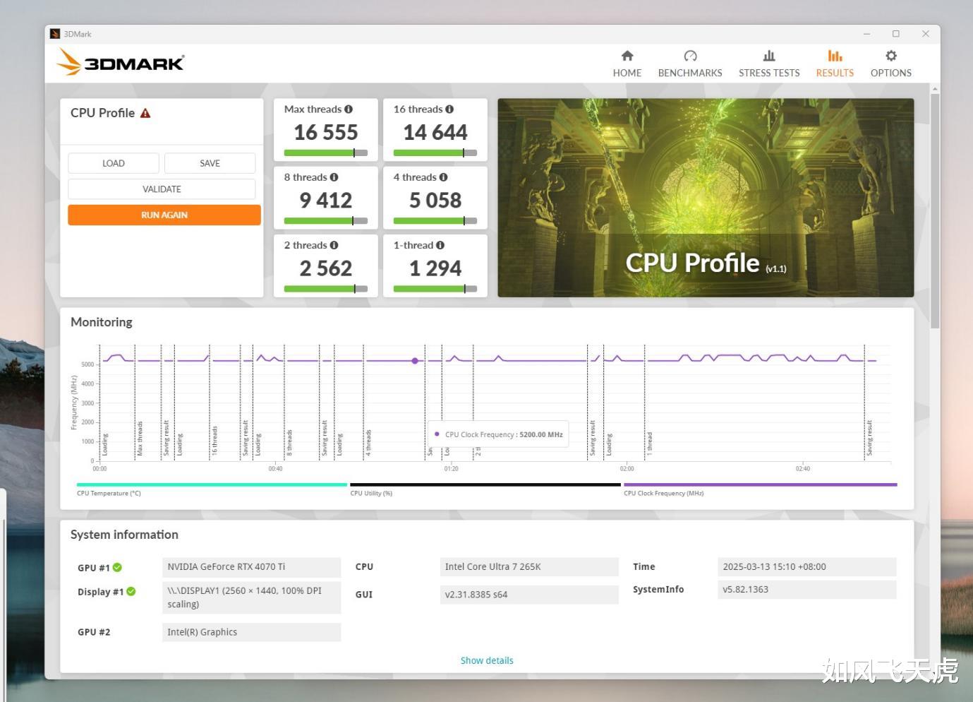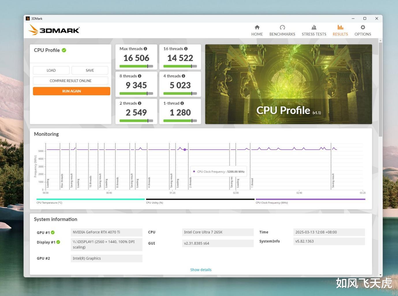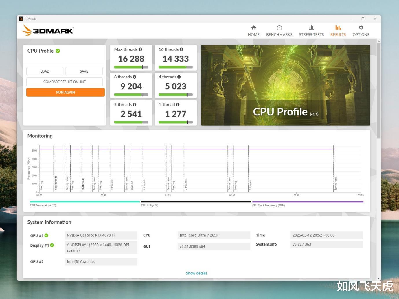 3DMARK CPU Profile,单线程1,277,最大线程16,288。