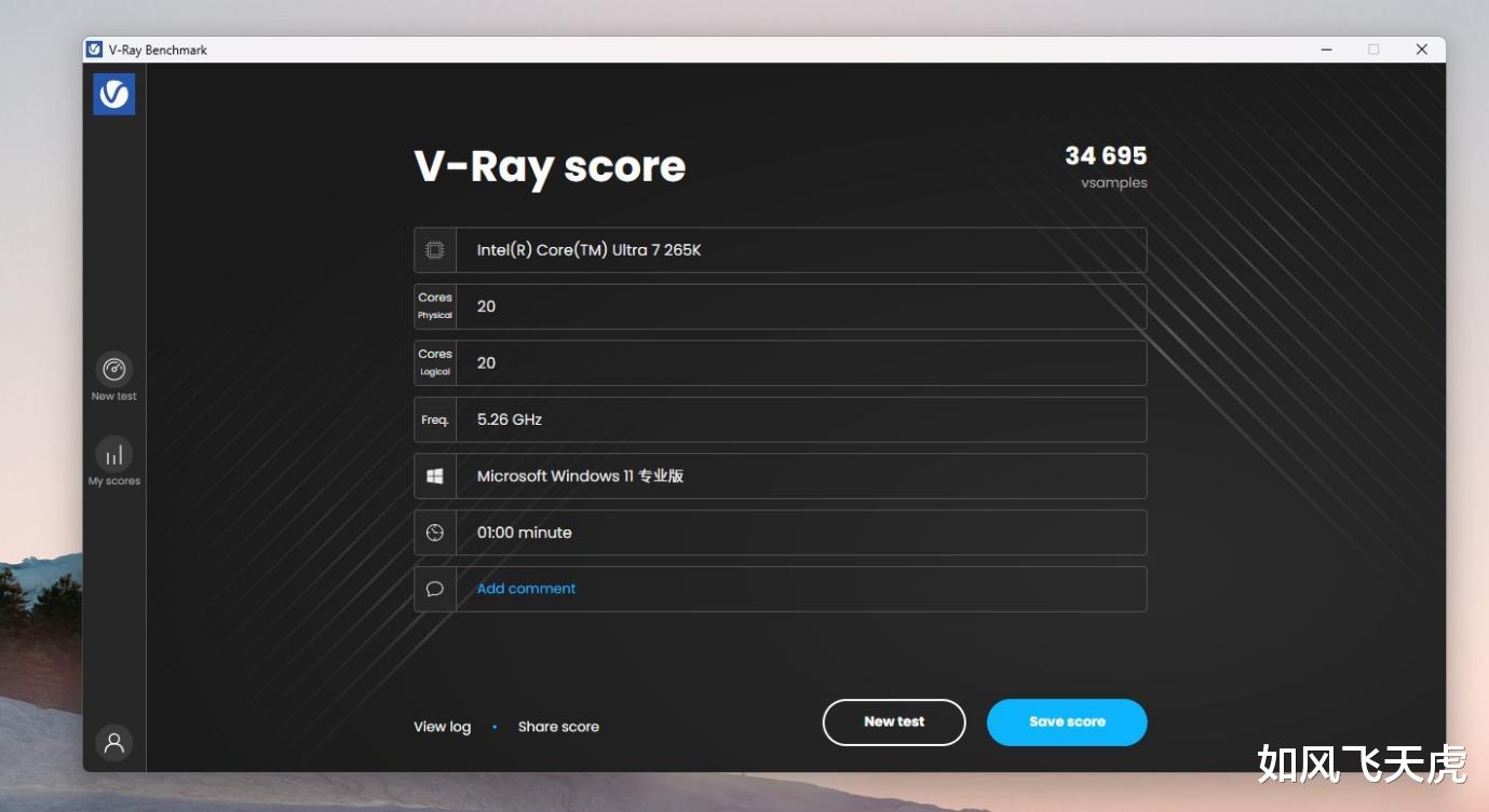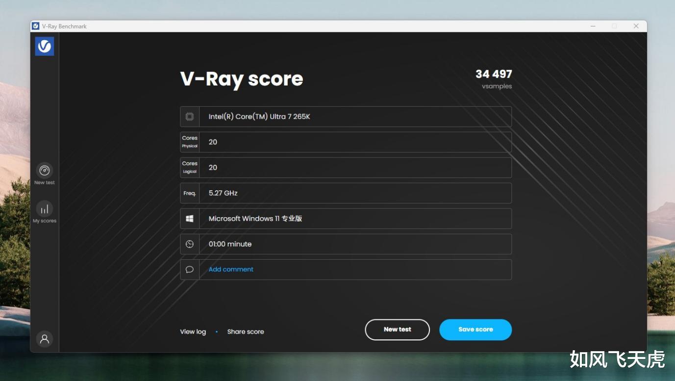 我们运行下V-RAY测试,显示34,695,比起之前的34,497分略有提升。
