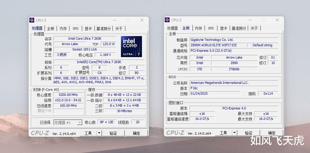 CPU-Z,正确识别CPU和主板,我们看通道规格显示是PCIE 5.0。