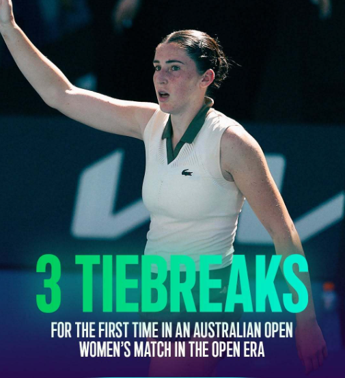 决胜盘双方保发至6-6,比赛进入史无前例的抢十大战。雅克莫以5-1完美开局,但科斯秋克展现冠军底蕴,连追6分反超至7-5。此时,法国人面临赛点危机,但她通过发球直接得分和对手双误稳住阵脚,将比分追至7-7。关键时刻,雅克莫的体能优势显现:她连续压制科斯秋克反手位,迫使对手失误,最终以10-7锁定胜局。雅克莫经过三个半小时的鏖战挑落20号种子科斯秋克,职业生涯首次击败TOP20球员,也取得澳网正赛首胜,这是公开赛年代首次在澳网女单比赛中出现三盘抢七(十)的情况。