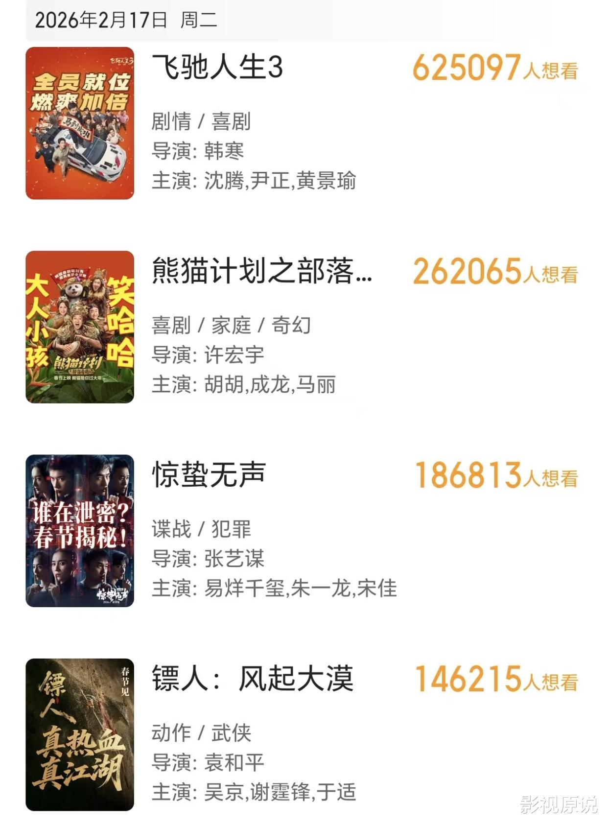 反观今年的春节档,仅有的三部续集《飞驰人生3》《熊猫计划2》和《熊出没之年年有熊》,关注度和期待值都不是很高,预告片的反响也都不是很好,尤其是《熊猫计划2》更是被很多观众评为烂片预定,它大概率会直接垫底。