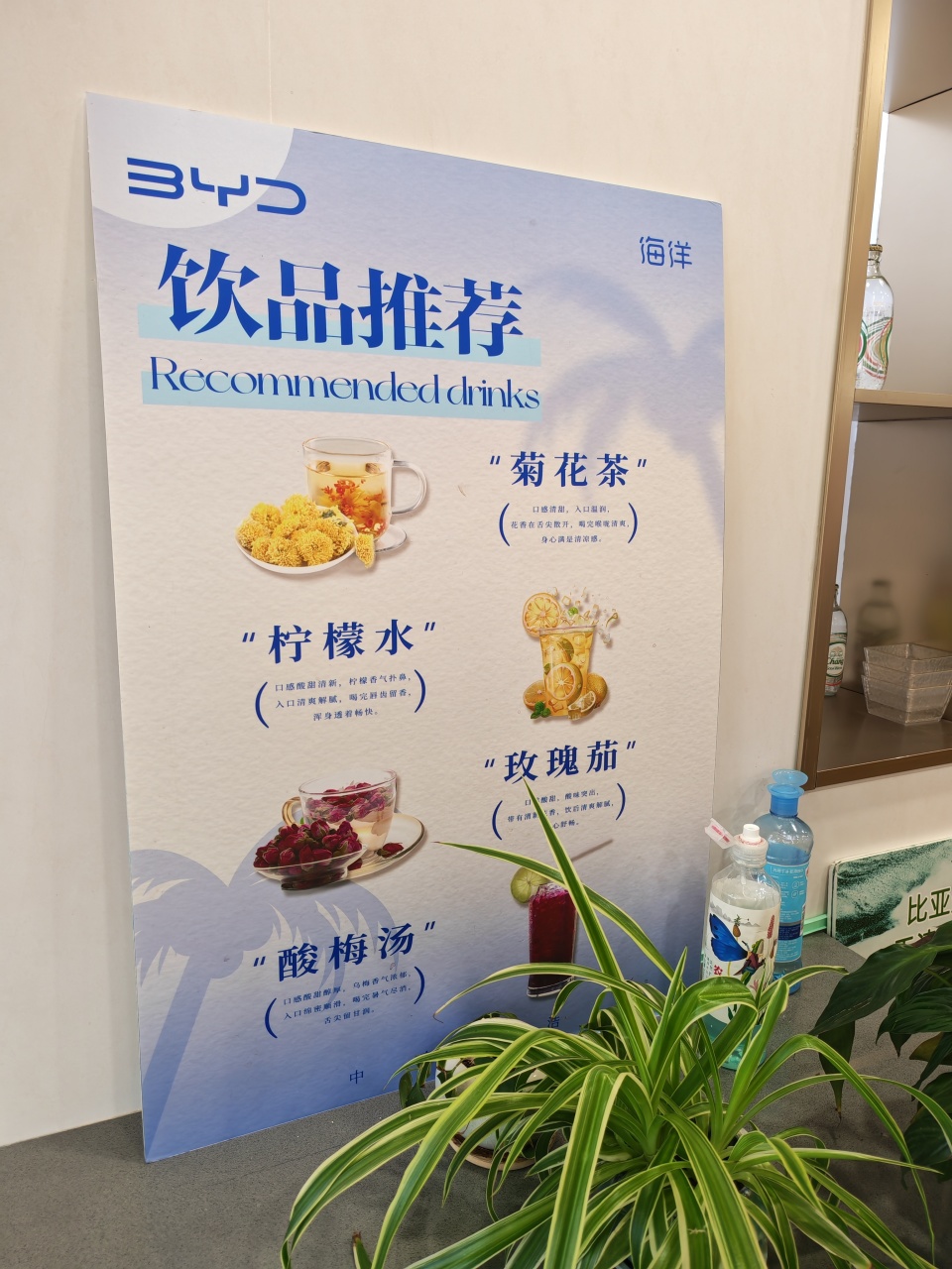 除了正餐以外,还有免费的咖啡、饮料、零食,水果。你只要豁出老脸,美国的斩杀线都斩不动你,比亚迪的4S店就能让你把肚子填饱。 实话实说,体验到这,比亚迪这服务已经把我哥们儿拿捏了,在这哪怕你只买六七万的海鸥、海豹05,一样是尊贵的比亚迪车主。我俩临走时,人家又给塞了两张洗车券,两张优惠券。我特意问了,免费洗车、免费充电,包括1000元装具抵用券这是店端提供的,不是每家海洋网4S店都有。我去的这家叫中泰信浩,位于天津市滨海新区,刚开时间不长,也算是一种引流手段。