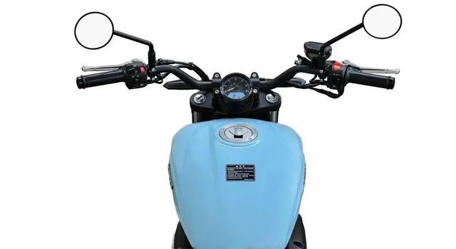 整车配置也还不错,标配机械指针加电子组合式仪表,与整车的复古造型还挺搭配。配备前110/80-16后140/90-15,前后轮都采用单碟刹,并配备双通道ABS防抱死刹车系统,可惜的是TCS牵引力系统并没有安排上。油箱十分壮硕,容量高达18L,对于一台不到500cc的V双车来说是完全够用。