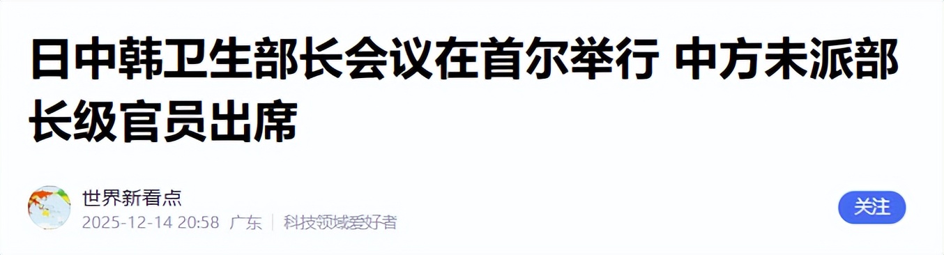 世界新看点——2025年12月14日——日中韩卫生部长会议在首尔举行 中方未派部长级官员出席