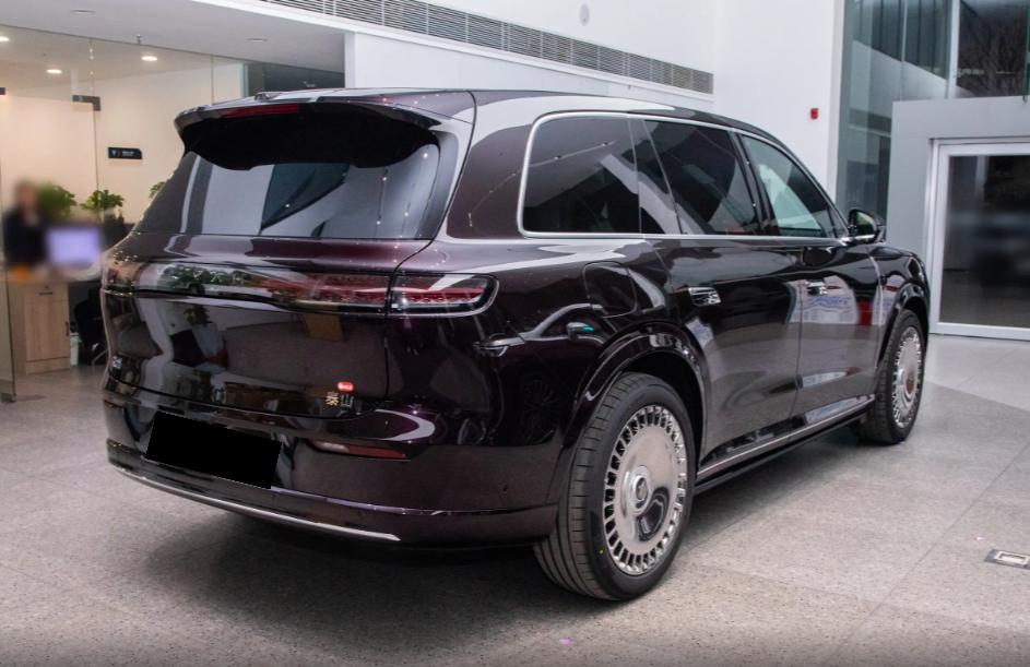 车身侧面没有过多线条刻画,毕竟自身定位摆在那里,设计元素太多反而有种画蛇添足的感觉。笔直腰线贯穿车身,半隐藏式门把手兼顾美观性和实用性。除了单色车漆,官方还提供双色车漆可选,这也是当前旗舰级车型的常规操作,毫无疑问双色车漆更显尊贵豪华。22寸大饼状银色轮圈相当显眼,这是一个非常夸张的数据,再次凸显自身的旗舰级身份,有需要的用户还可以花费两万元选装支持电动吸合以及自动开合的全车车门。得益于三腔空悬的加持,整个车身高度的调节范围比较广泛,在不同用车场景下提供相对应的便捷。