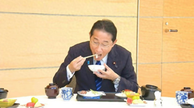 而近日根据日本媒体公布的视频中,日本首相岸田文雄带着内阁成员在一起化身“吃播”,岸田文雄在面对镜头的时候,拼命的假装微笑,然后大口吃着从福岛运过来的海鲜产品,同时还拼命解释福岛海鲜“十分美味”。