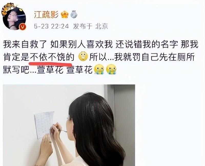 她竟然把《你好,李焕英》的主题曲《萱草花》叫成了《萱青草》。而且在微博回应里,她居然把成语“不依不饶”写成了“不依不挠”。