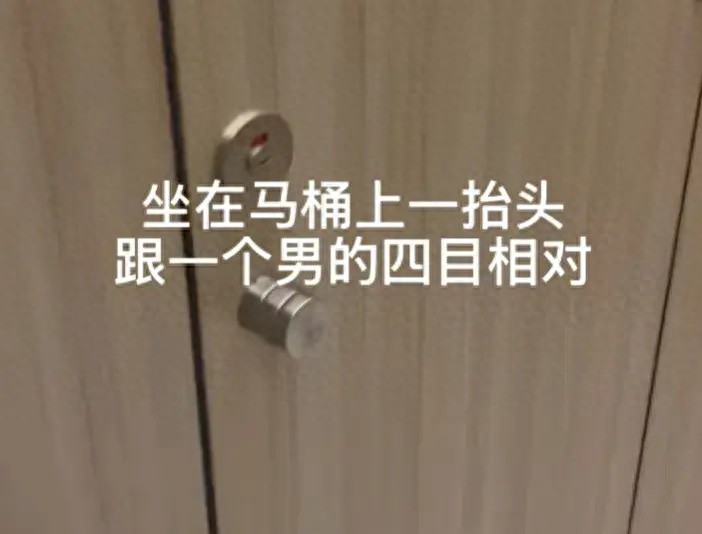 “坐在马桶上,一抬头跟一个男的四目相对”。