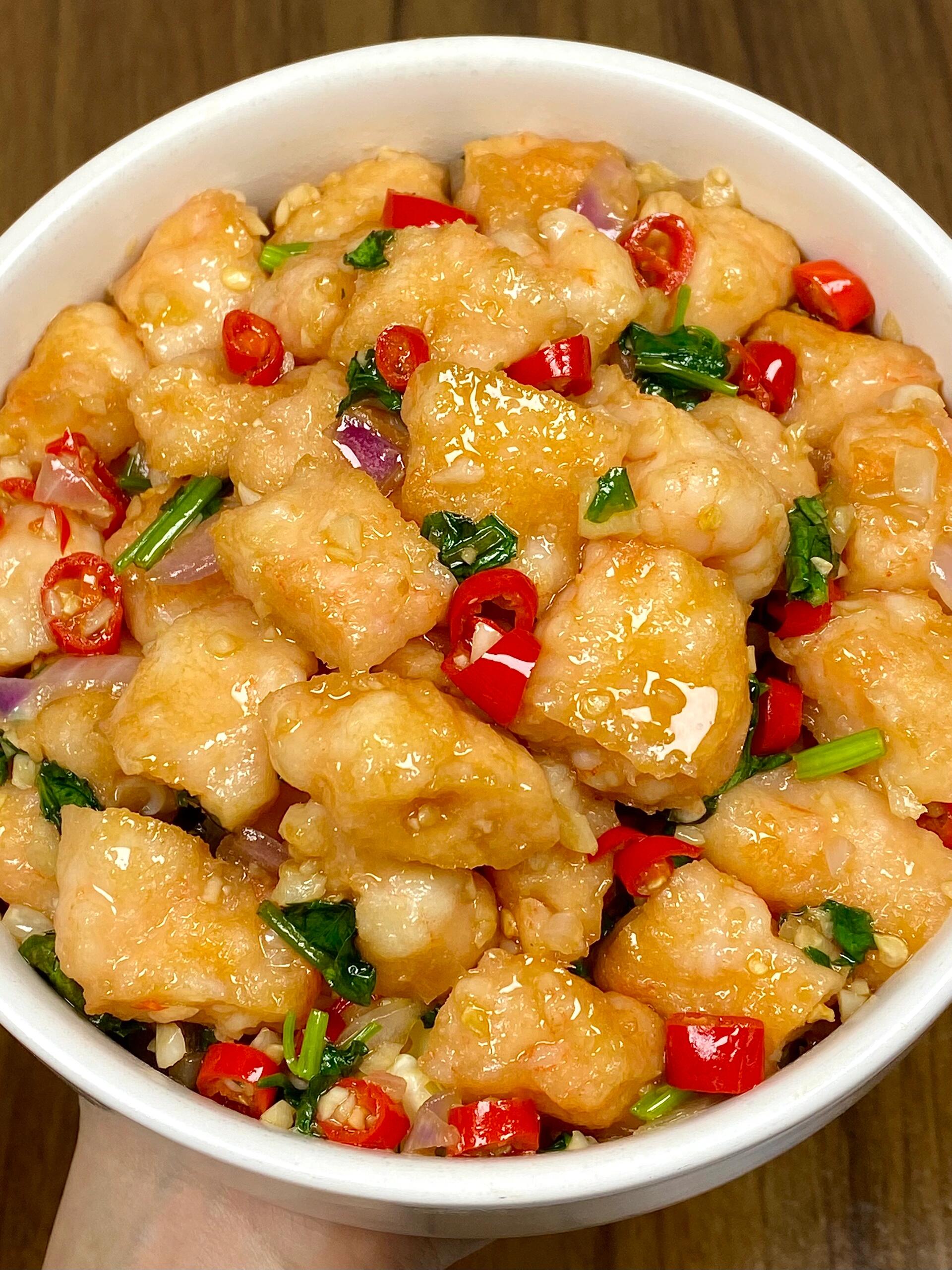 这道菜最适合周末约上三五好友,一边吃一边聊,辣得嘶哈嘶哈的时候还停不下来。而且虾滑可以提前做好放冰箱,酱汁也能提前调好,来客人的时候10分钟就能上桌。